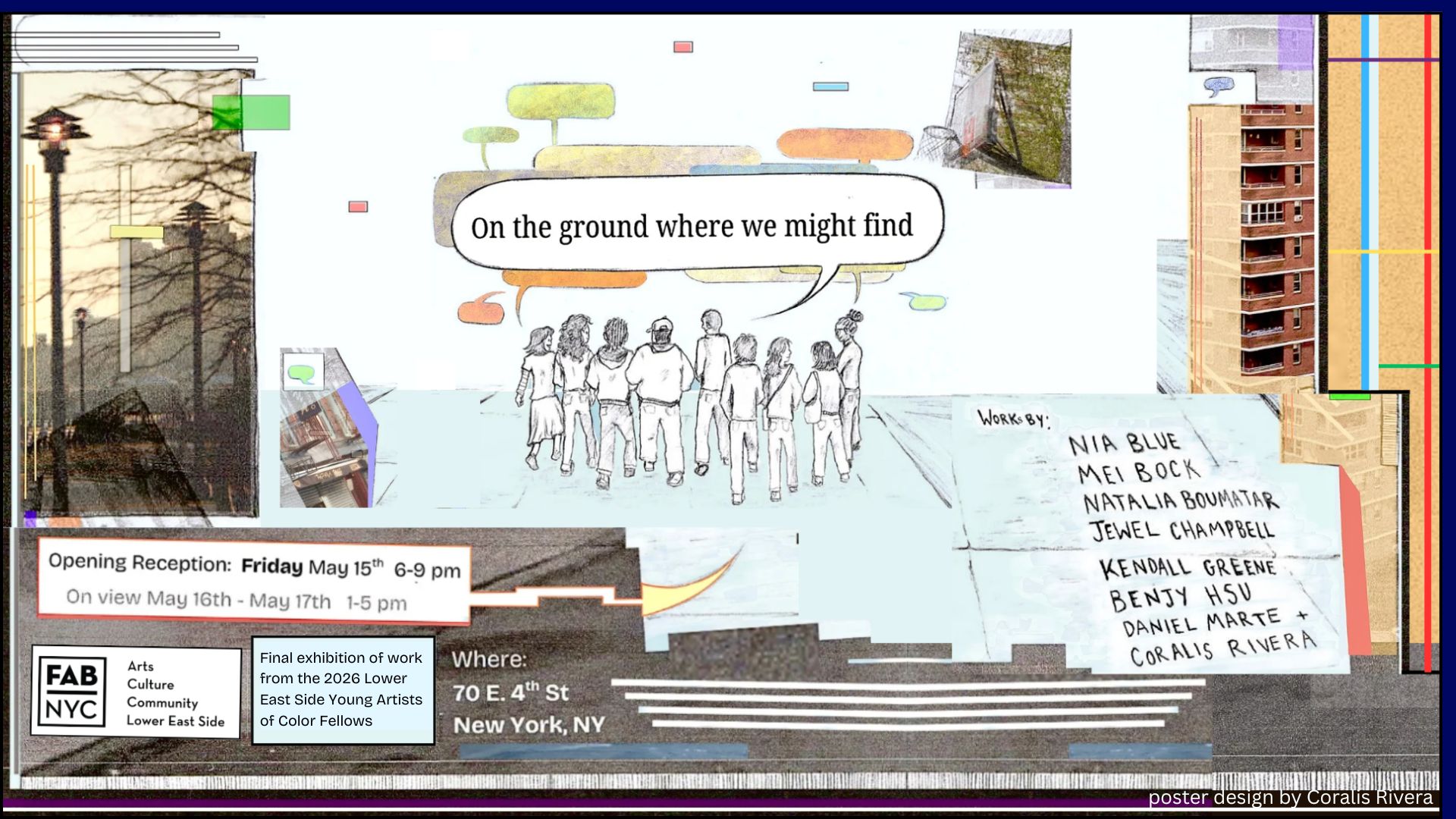 An exhibition of works by FABnyc's 2026 Lower East Side Young Artists of Color Fellows 70 E 4th Street, New York NY 10003 FREE with RSVP Opening Reception: Friday, May … Continue reading “On the ground where we might find”: 2026 LES Young Artists of Color Fellowship Exhibition